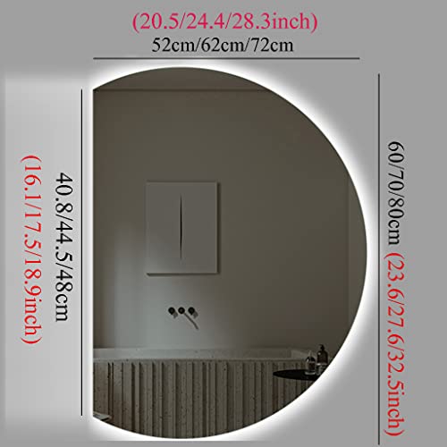 ZHANGDONG Specchio da Bagno a LED Semicircolare 60/70/80 Cm Senza Interruttore/Luci a Specchio con Interruttore a Sfioramento Specchio d'Argento Antideflagrante da 5 Mm necessità di Cablaggio
