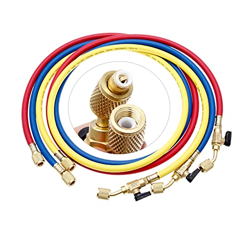 ZHANGHONGWEI 3pcs 60" R134A R41. 0A. Corrente ALTERNATA Valvole a Sfera Set da Tubi di Ricarica 800 PSI 1/4"SAE Adatto per Il refrigerante di Aria condizionata R134A W/Forti connettori