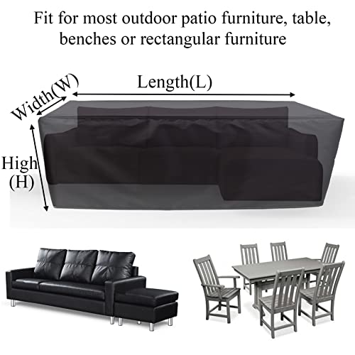 100% impermeabile: materiali impermeabili di qualità superiore con un rivestimento rinforzato, questa copertura per mobili da giardino impermeabile potrebbe impedire all'acqua di infiltrarsi e resistere alla pioggia per tutte le stagioni, mantenendo i tuoi mobili da esterno asciutti e pronti per l'uso