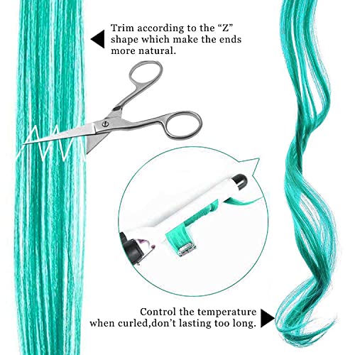 ZHAOWWEI 9 PCS Principessa Estensioni colorate Multi-colori Punti salienti della festa Streak Posticci sintetici Clip-in/Clip sulle estensioni dei capelli colorati (verde acqua)