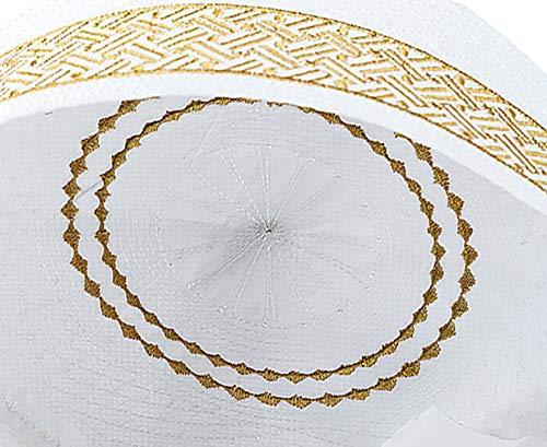 Zhbotaolang Turbante Arabo Saudita del Ricamo del Cappello di Preghiera degli Uomini Musulmani Adulti(Giallo 56CM)
