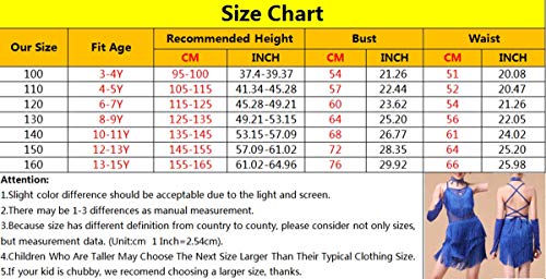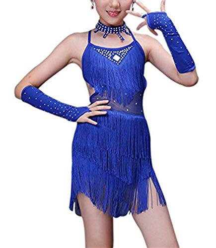 Zhbotaolang Vestito da Ballo Latino Bambina - Abito Frangia Splendente Costumi per Tango Rumba Valzer (Blu,160CM)