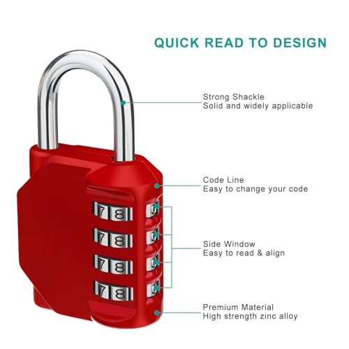 ZHEGE Lucchetto Armadietto Palestra, Lucchetti con Combinazione a 4 Cifre per Palestra e Scuola (Rosso e Rosso)
