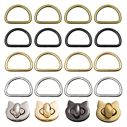 Zhenyuding Chiusure per Borse 20 Pezzi Anello D Anelli per Borse Fibbia Metallo D-Ring Metallo D Anelli Girevole Lock Chiusura Borsa con Chiusura a Torsione per Accessori Borsa Artigianale DIY