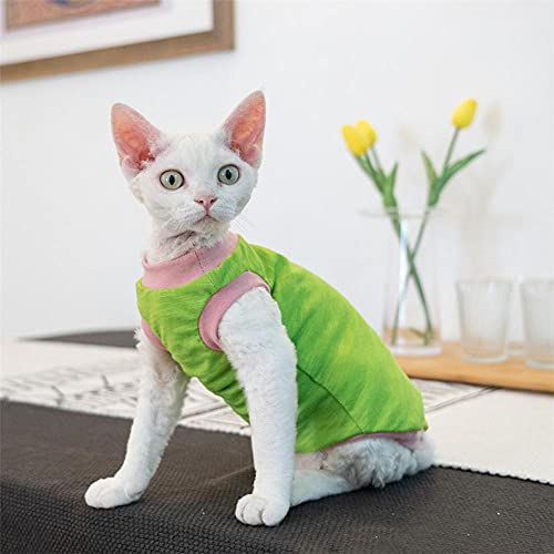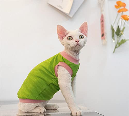 ZHIHAN Vestiti per Gatti Sfinge Gilet per Gatti Senza peli, Abbigliamento Genitore-Figlio, Camicia di Protezione Solare Estiva (Multicolore Opzionale), Verde, S +