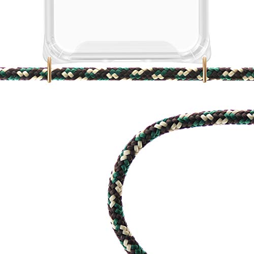 ZhinkArts Catena per cellulare compatibile con Apple iPhone 13 - 6,1" display - Smartphone Necklace Custodia con cinturino - Cordino con custodia da appendere in verde mimetico