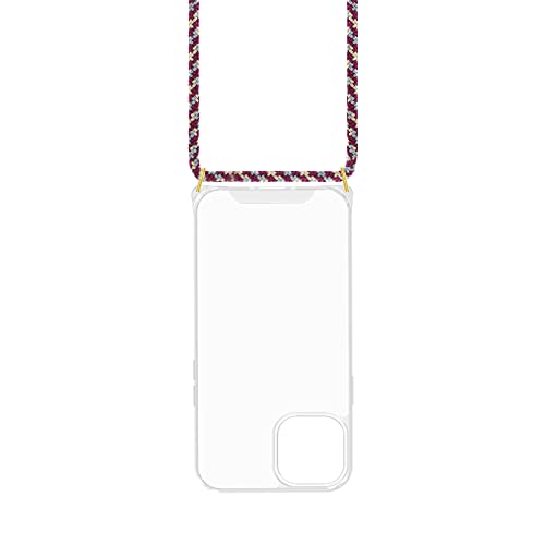 ZhinkArts Catena per cellulare compatibile con Apple iPhone 13 - 6,1", display - Smartphone Necklace con cinturino - Cordino con custodia da appendere in bordeaux/rosso mimetico