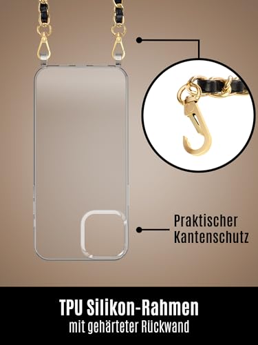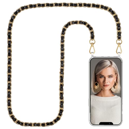 Protezione ottimale: la custodia della catena per cellulare è composta da un telaio in silicone TPU con protezione dei bordi e una parete posteriore temprata in plastica dura. Il nastro della catena per cellulare ha una lunghezza di 1,45 m