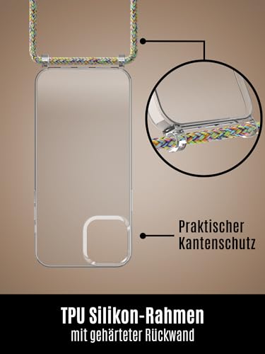 ZhinkArts Collana per cellulare compatibile con Apple iPhone 12 Mini - Display da 5,4" - Custodia per smartphone con cordino - Cordino con custodia da appendere in arcobaleno