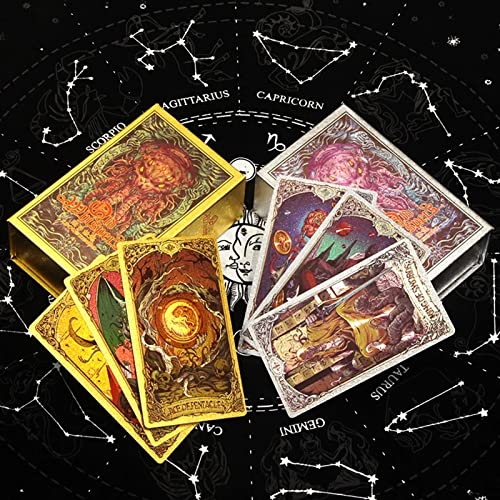 ZHIRCEKE Carte dei Tarocchi Impermeabili in PVC con Guida E Scatola Squisita, Cthulhu Mythos Vecchi Sussurri Carte Mazzo di Tarocchi per Principianti E Giocatori Professionisti,d'oro