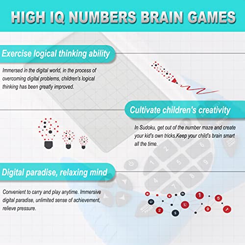 Portatile: l'ergonomia e il design dello schermo di protezione degli occhi da 3,5 pollici forniscono ai giocatori una comoda esperienza di puzzle Sudoku, puoi goderti il divertimento del Sudoku in qualsiasi momento, ovunque senza carta e penna. Un ottimo giocattolo da viaggio per una lunga corsa in auto o in aereo.
