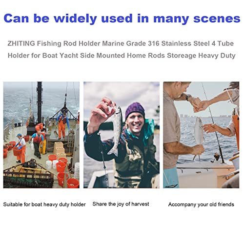 ZHITING Portacanne da Pesca Marine Grade Acciaio Inossidabile 316 Rack 4 Tubi per Barche Yacht Lato casa Canne Storeage Stoccaggio Heavy Duty