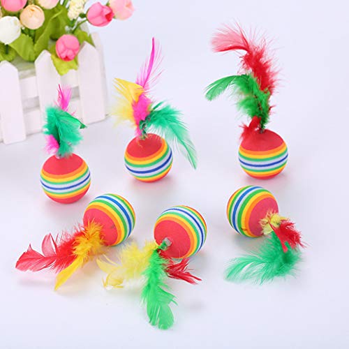 ZhiwenCZW 5pcs Cat Ball Toys with Feather Pets Kitten Teaser Interactive Funny Supply