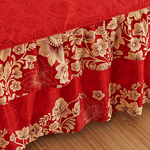 ZHIYUAN Copriletto con Volant a Doppio Strato e 2 federe, 200 x 220 x 35 cm, Rosso e Oro