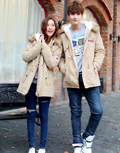 Zhiyuanan Coppia Cappotto Uomo Pelliccia con Cappuccio Inverno Caldo Giacca Parka Spessa Fodera Giubbotto Unisex Lungo Trench Giacconi Tops Cachi 2XL