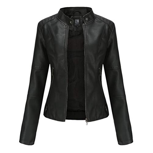 Zhiyuanan Giacca Ecopelle Donna PU Slim Fit Sottile Collo Alto Primavera Autunno Manica Lunga Elegante Giubbino Corto Giubbotti Biker con Cerniera Nero S