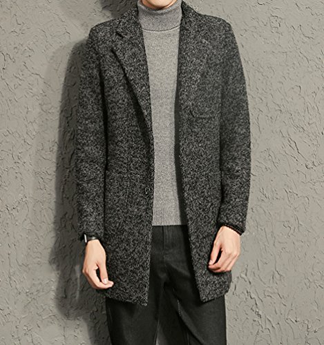 Zhiyuanan Uomo Addensare Cappotto Inverno Giacche di Trenchcoats Moda Tweed Overcoat Soprabito Caldo Lunga Giubbino Outwear Grigio Scuro M