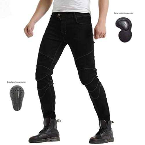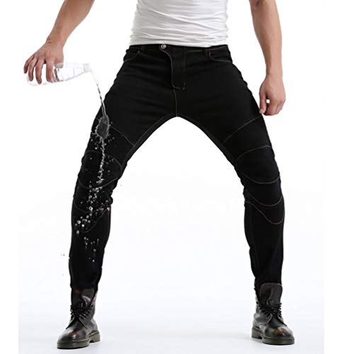 Zhiyuanan Uomo Donna Jeans Moto Impermeabile Biker Anti-Caduta Denim Pantaloni da Moto Protettivo Elastico Pantaloni Protettivi con 2 Protezioni Ginocchia e 2 Protettori Anca Nero 33W / 41L