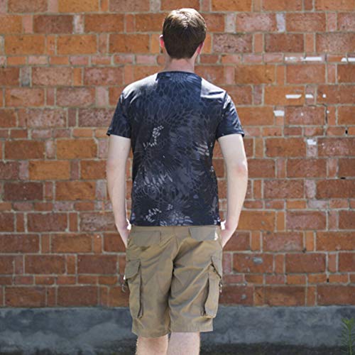 Zhiyuanan Uomo Tattico Mimetiche Magliette a Manica Corta All'aperto Asciugatura Veloce Girocollo Leggero Caccia Militare Escursionismo Fitness Sport Camouflage T Shirt Top Pitone Nero M