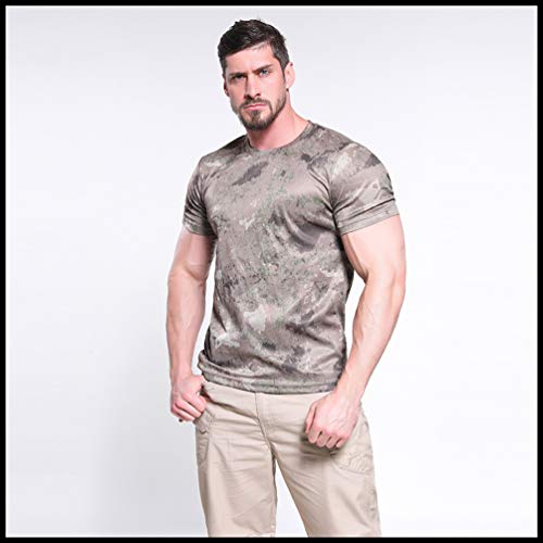 T-shirt manica corta stile militare mimetico tattico per attività all'aperto, ad asciugatura rapida, traspirante, leggera, vestibilità slim, girocollo.