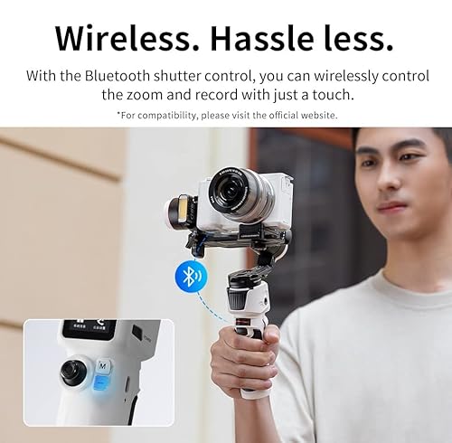 【Senza fili. Meno problemi.】Dite addio ai complicati collegamenti via cavo. Con il controllo dell'otturatore Bluetooth, è possibile controllare in modalità wireless lo zoom e la registrazione con un semplice tocco. Esperienza di ripresa elevata.