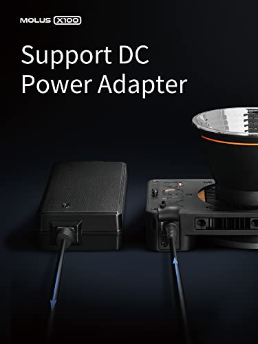 【3 modi per alimentarvi】La MOLUS X100 utilizza una tecnologia di alimentazione brevettata per supportare la sua potente potenza di 100W. Potendo scegliere tra la batteria dell'impugnatura, l'adattatore DC e la ricarica rapida PD da 100W, potrete limitare i tempi di inattività durante le vostre riprese. La batteria dell'impugnatura della X100 pesa 440 g e non è inclusa nella confezione standard.