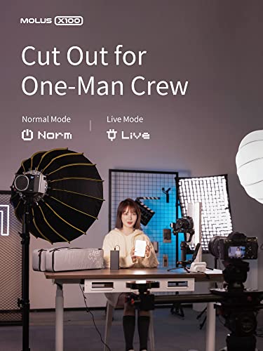 【Semplificare e rimodellare l'illuminazione professionale】MOLUS X100 sfida lo stereotipo delle dimensioni dell'illuminazione cinematografica, portandovi la luce COB più leggera che è abbastanza potente e versatile da funzionare incredibilmente bene in diversi scenari professionali. L'attacco ZY è progettato per modificatori dedicati che sono compatibili anche con quelli dell'attacco Bowens, soddisfacendo le vostre esigenze di effetti più fini.