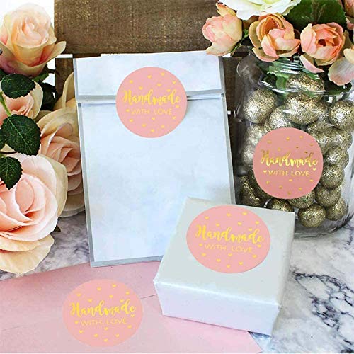 ZHjuju Adesivi Handmade with Love, 500 Pezzi Etichette adesive per Piccoli Negozi Adesivi per aziende Adesivi aziendali da 1 ''Forniture adesive per scatole Regalo aziendali Carte