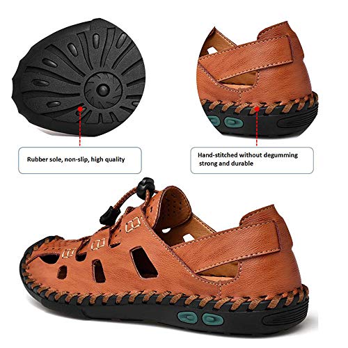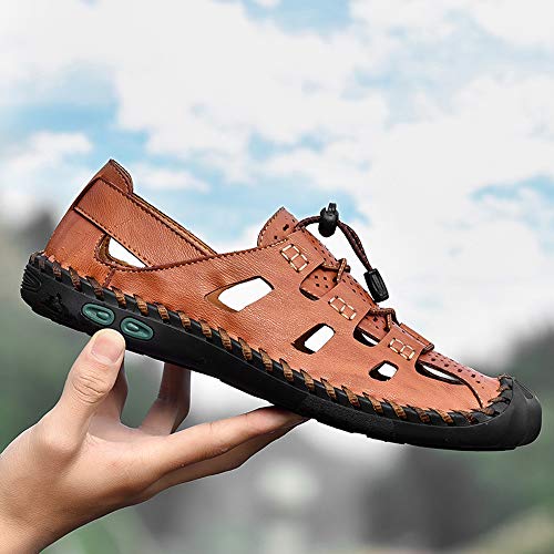 ZHNSHM Sandali sportivi per uomini piedi chiusi suoli in pelle suoli regolabili manuali sandali da spiaggia estate