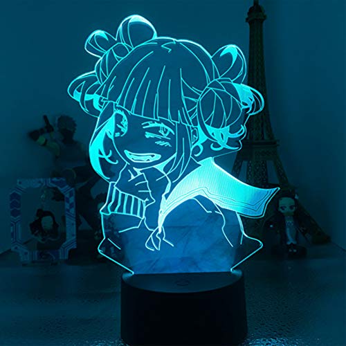 Zhongkaihua My Hero Academia Anime 3D Illusion Lamp - Toga Himiko Figurine giocattolo luci notturne 16 colori decorazione camera da letto lampade da scrivania, sensore touch USB LED lampade