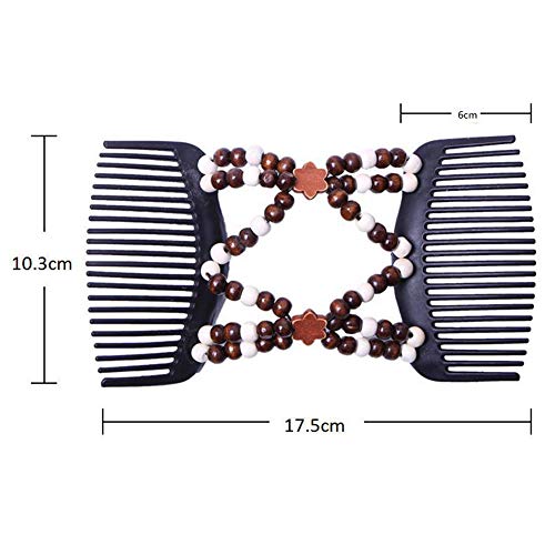 Zhouba - Pettine magico da donna con doppio scorrimento, con perline di legno, accessorio per capelli