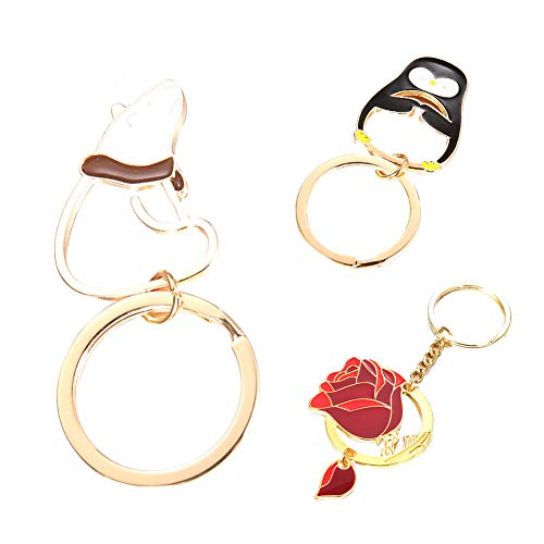 ZHOUBA - Portachiavi con ciondolo a forma di pinguino con fiori di rosa, motivo: pinguini