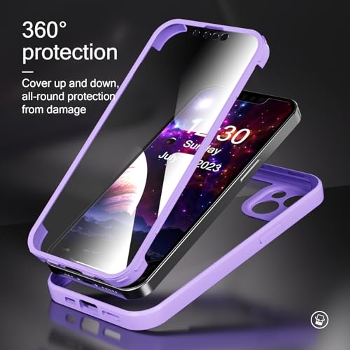 ZHOUDSAEIFD Custodia per iPhone 14 Plus, protezione completa del corpo a 360 ° Cover per telefono antiurto di livello militare con protezione dello schermo - Viola a 360°