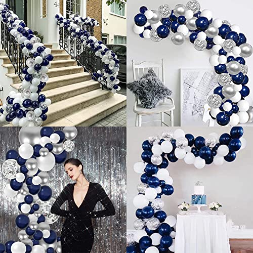 ZHOUHON 80 Palloncini Blu Argento,Palloncini Blu Navy,Palloncini Metallici Argento,Palloncini Bianchi e Palloncini Coriandoli Argento, per Laurea, Addio Al Nubilato, Matrimonio (argento)