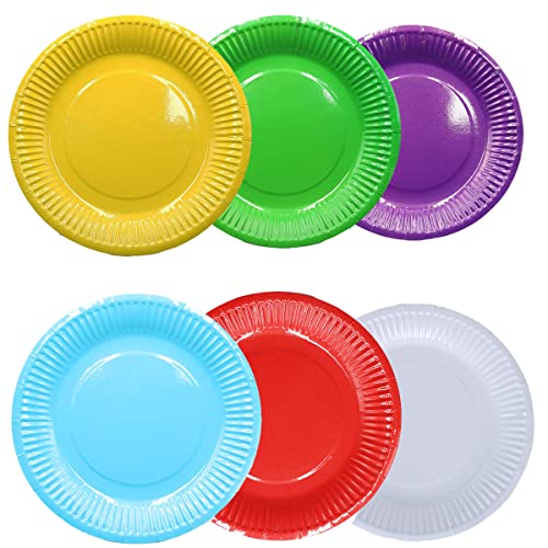 【Taglia unica】 Diametro 18 cm/7 pollici. 5 piatti di carta in giallo, rosso, blu, verde e rosa. Sono luminosi e belli per aggiungere più colori alle tue feste.