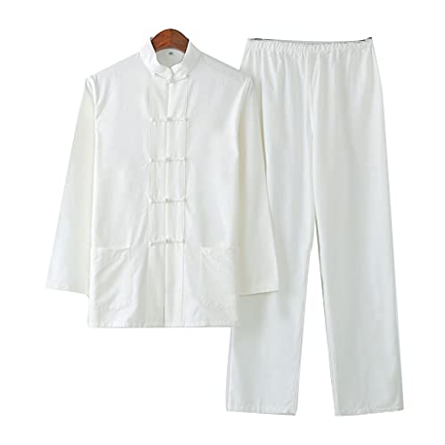 ZHOUXIAO Abbigliamento da Uomo in Puro Cotone Tai Chi Uniforme Uomo Kung Fu Abbigliamento a Maniche Lunghe Cinese Tradizionale Vestiti Tradizionali, Ampia Vestito di Sizetang White-XL