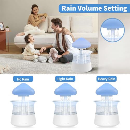 【Suono rilassante della pioggia】: Umidificatore bambini imita il suono rilassante delle gocce di pioggia, creando un'atmosfera tranquilla che ti aiuta a rilassarti e ad addormentarti. Il design leggero con nebbia d'acqua e gocce di pioggia può umidificare l'aria e garantire la qualità dell'aria. Il timer consente di impostare la durata della nebbia su 4, 6 o 8 ore.