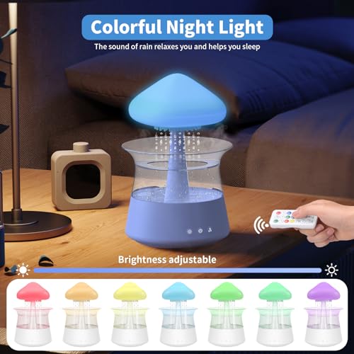 ZHOUZMIN Umidificatore, 450ml Top Fill Umidificatore Ambiente diffusore olio essenziale con Luce notturna 7 colori, timer 8 ore e Suono Goccia Pioggia per Casa, Ufficio, Camera. Incluso Telecomando