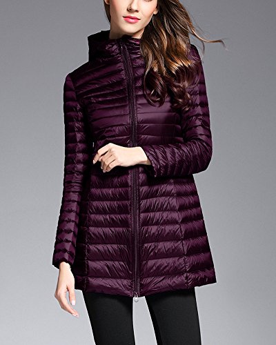 ZhuiKun Lunga Giacche Piumino Donna Ultraleggeri Cappotto Trapuntato Packable Giacca con Cappuccio Viola Scuro XL