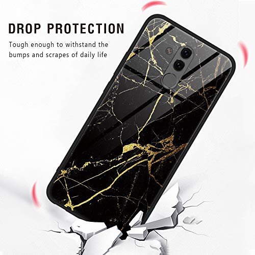 ZhuoFan Cover per Huawei Mate 20 Lite, Custodia Antiurto con Disegni in Vetro Temperato 9H [AntiGraffio] + Cornice Paraurti in Silicone Morbido per Huawei Mate 20 Lite (Marmo Nero)