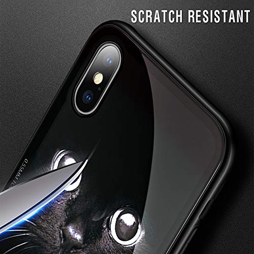 ZhuoFan Cover iPhone Xs Max, Custodia Antiurto con Disegni in Vetro Temperato 9H [AntiGraffio] + Cornice Paraurti in Silicone Morbido per Apple iPhone Xs Max (Gatto Nero)