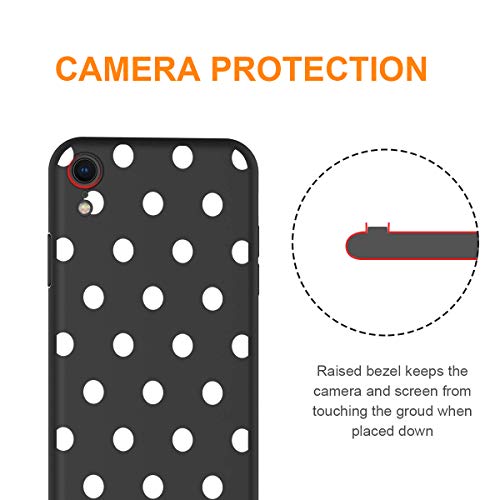 ZhuoFan Cover per iPhone XR, Custodia Cover Silicone Nero con Disegni Ultra Slim TPU Morbido Antiurto 3d Cartoon Bumper Case Protettiva per iPhone XR Smartphone (Pois bianco)