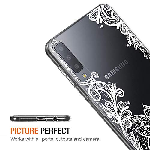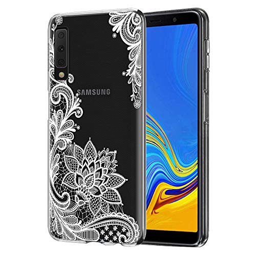 ZhuoFan Cover per Samsung A7 2018, Custodia Cover Silicone Trasparente con Disegni Ultra Slim TPU Morbido Antiurto 3D Cartoon Bumper Case Protettiva per Samsung Galaxy A7 2018 (Fiore Bianco)