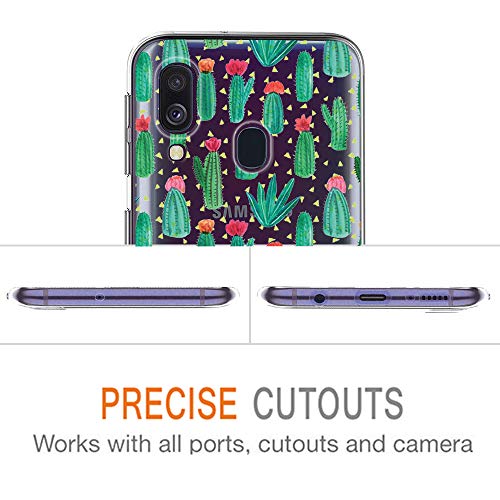 ZhuoFan Cover per Samsung Galaxy A40, Custodia Cover Silicone Trasparente con Disegni Ultra Slim TPU Morbido Antiurto 3d Cartoon Bumper Case Protettiva per Samsung Galaxy A40 (Cactus)