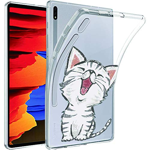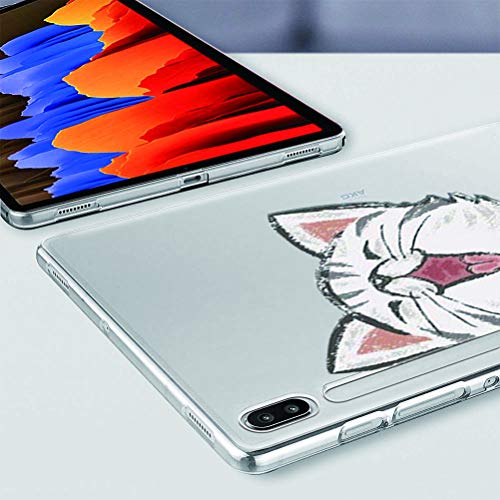ZhuoFan Cover TPU Trasparente per Samsung Galaxy Tab S7 Plus SM-T970,T975 12,4 pollice, Sottile Custodia Silicone Morbido con Design Print Carton Pattern Antiurto Shockproof Phone Case, Gatto