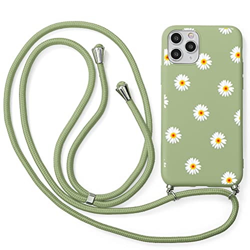 ZhuoFan Custodia con Cordino per iPhone 13 [6.1"] Margherita Verde Morbido TPU Bumper Cover con laccio Silicone Antiurto Protettivo Sottile Case Regolabile Cellulare Girocollo per iPhone 13
