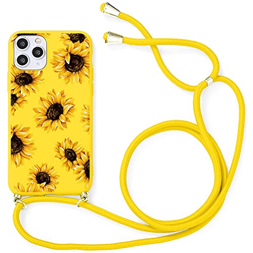 ZhuoFan Custodia con Cordino per iPhone 13 Mini [5.4"] Girasole Giallo Morbido TPU Bumper Cover con laccio Silicone Antiurto Protettivo Sottile Case Regolabile Cellulare Girocollo per iPhone 13 Mini