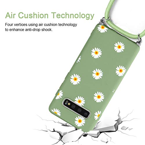 ZhuoFan Custodia con Cordino per Samsung Galaxy S10 Plus [6.4"] Margherita Verde Morbido Bumper Cover con Laccio Silicone Antiurto Protettivo Case Regolabile Cellulare Girocollo per Samsung S10 Plus