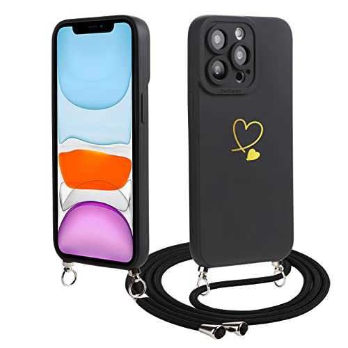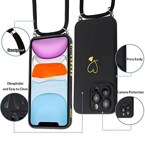 ZhuoFan Custodia con Cordino per Xiaomi Redmi Note 11 Pro 4G5G 2022 6,67'', nero Silicone TPU Cover per telefono Protezione Antiurto anello chain Cellulare Cute modello ragazza Case, amore 1