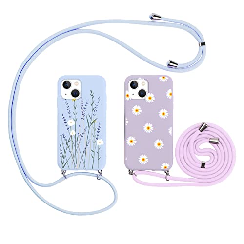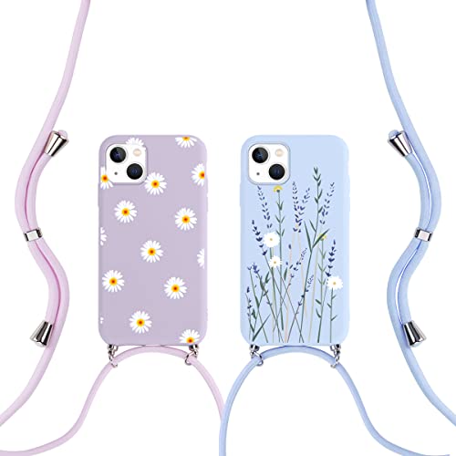 ZhuoFan [2 Pezzi Custodia con Cordino per iPhone 13-6.1", Cover con Collana Practical Stylish, Colorato Morbido Silicone TPU Bumper Antiscivolo Case per Cellulare Girocollo